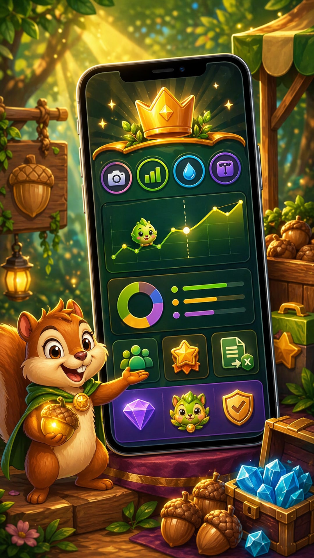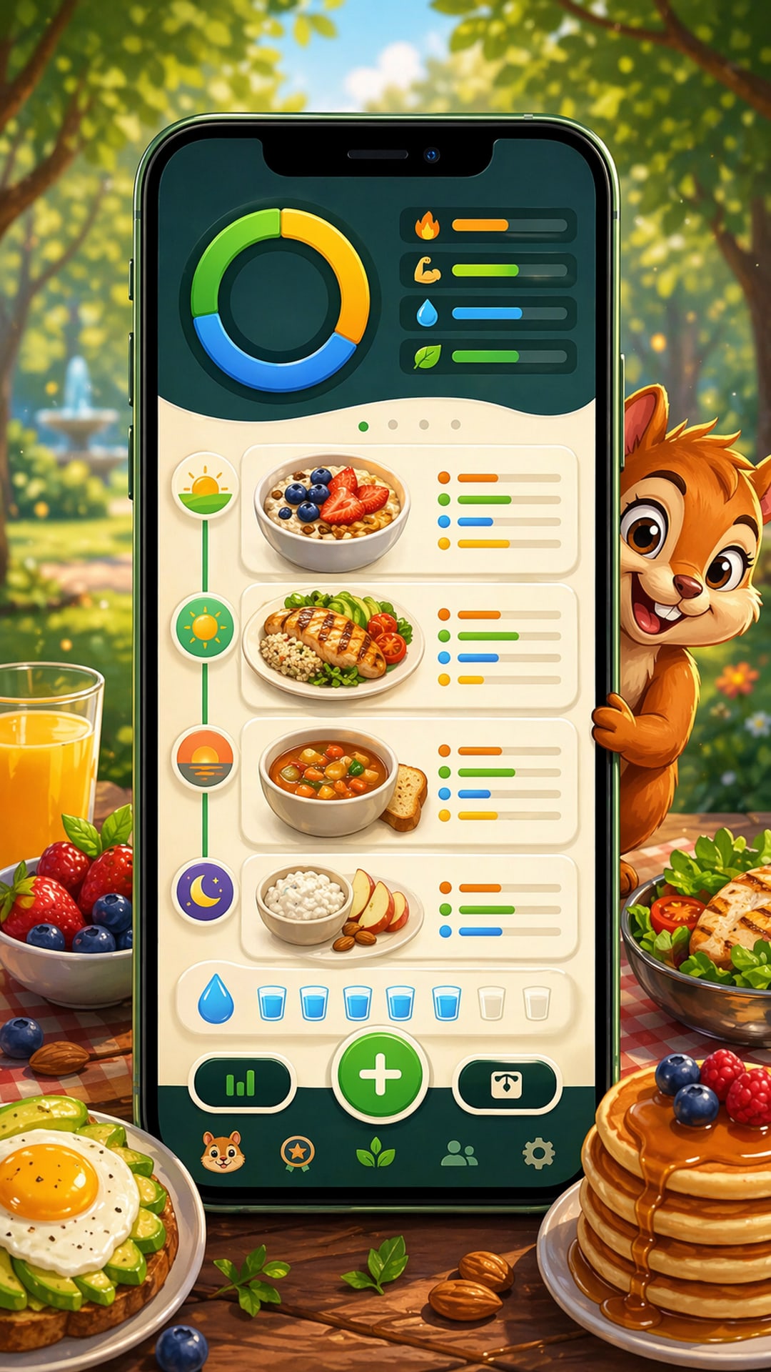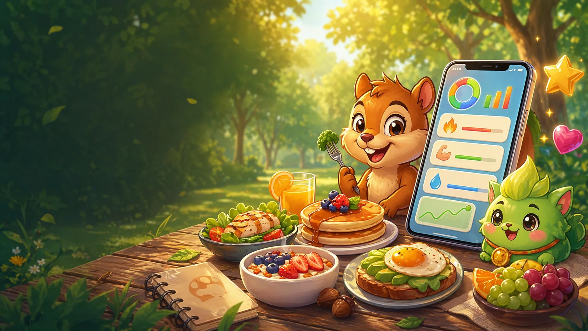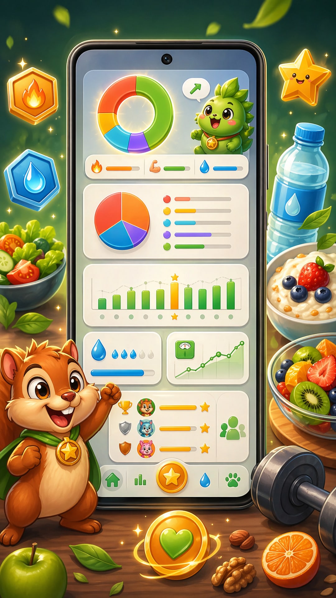 Calories, macros, water, weight, habits and statistics live in one playful interface.